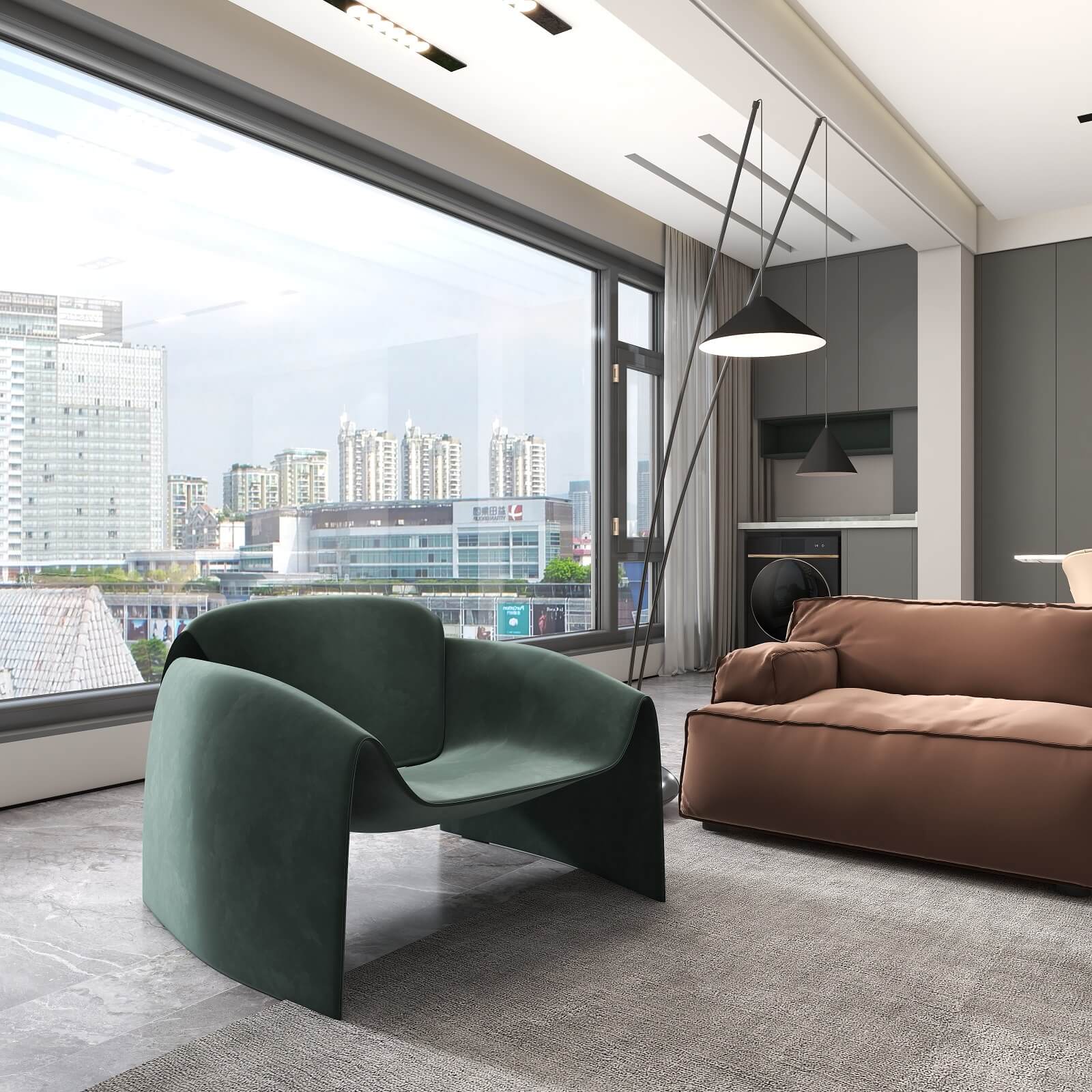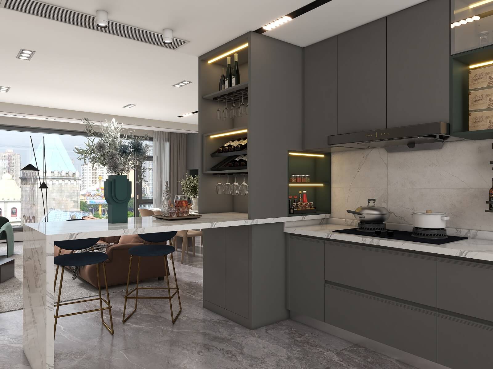 全面開放式格局,讓客餐廳之間相互聯(lián)動,毫無阻隔,在提升體驗(yàn)感的同時,也增強(qiáng)了整體采光和通風(fēng)。